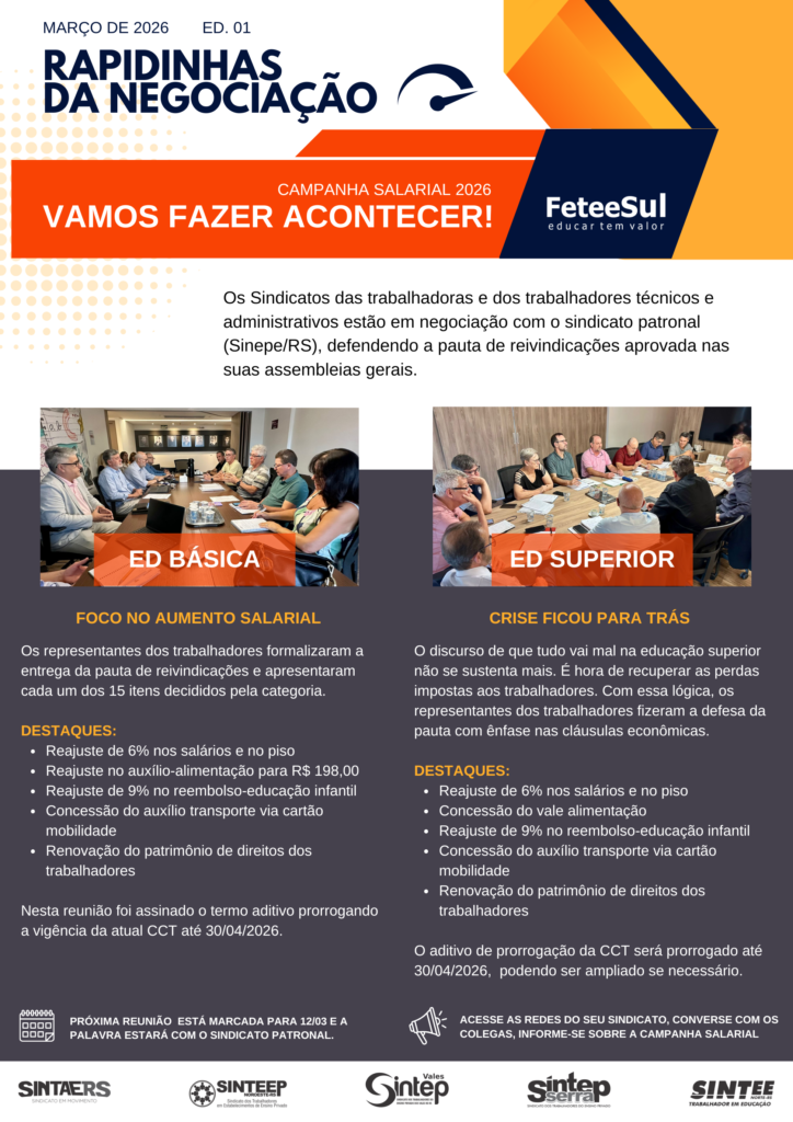 Home > O Sindicato > Notícias > Sem categoria > Confira aqui o primeiro informativo sobre a negociação com o Sinepe