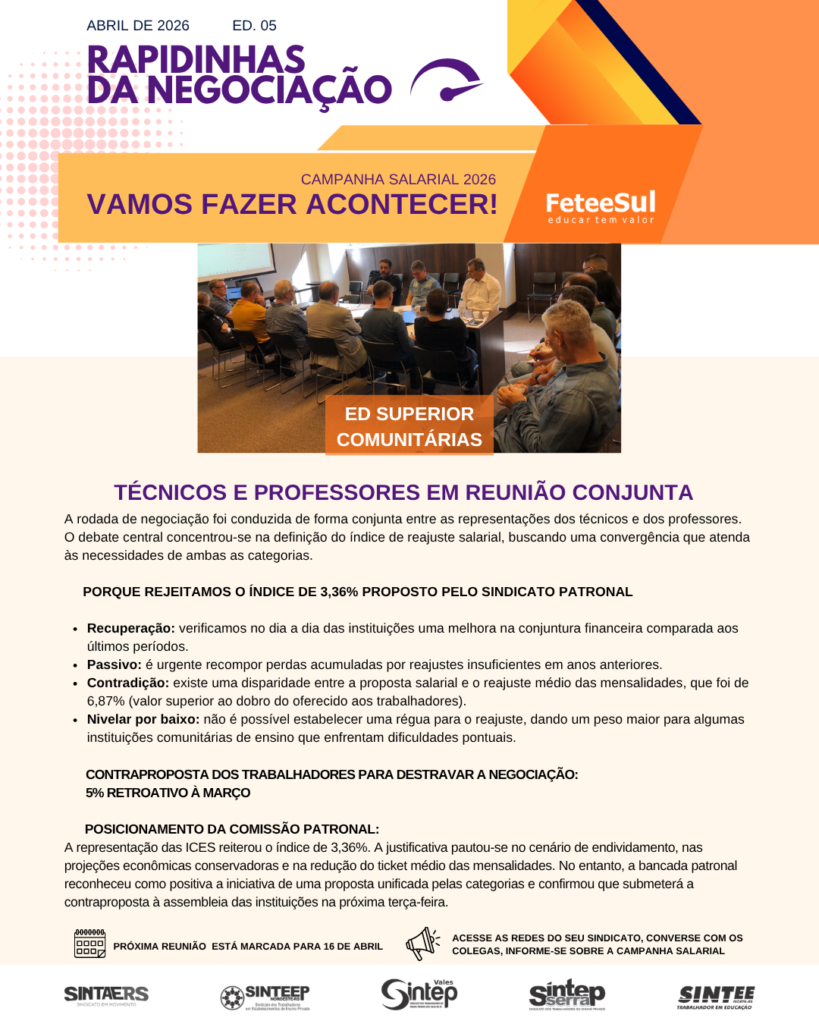 Home > O Sindicato > Notícias > Sem categoria > Educação Superior Comunitárias: técnicos e professores em reunião conjunta