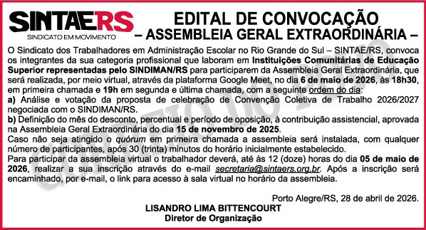 Educação Infantil: Assembleia Geral Extraordinária